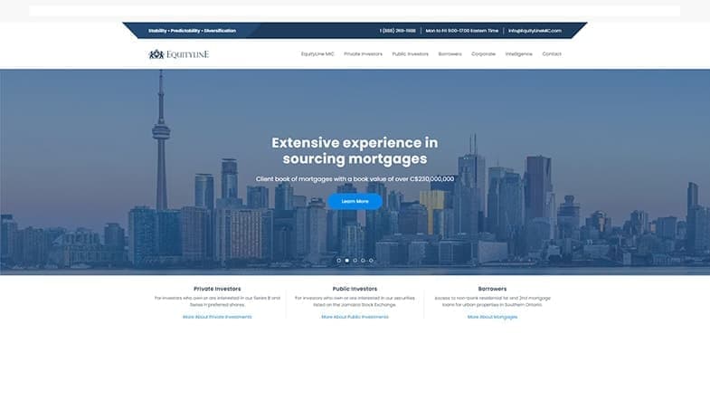 Equityline Financial has been in the mortgage lending business for over 12 years, but the brand was in need of a significant refresh to prepare for the incorporation and the upcoming public offering of shares. We set out to revamp the whole product — to make it an easy-to-navigate, modern and intuitive website that would have a full range of options expected from a registered private mortgage brokerage.